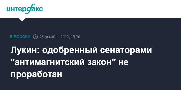 Лукин: одобренный сенаторами "антимагнитский закон" не проработан