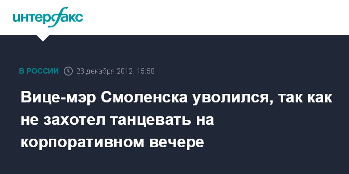 Вице-мэр Смоленска уволился, так как не захотел танцевать на корпоративном вечере