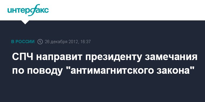 Накануне СПЧ опубликовал заключение, в котором говорится, что "антимагнитский закон" противоречит Конституции РФ, международным нормам и нуждается в корректировке.