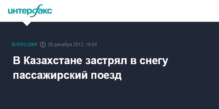 Усть-Каменогорск. 26 декабря. INTERFAX.RU - В районе станции Дегелен Восточно-Казахстанской области в снежном заносе застрял пассажирский поезд сообщением Астана-Риддер. В настоящее время состав прицеплен к снегоочистительному поезду и двигается в сторону города Семея, сообщает в среду областной департамент по ЧС.