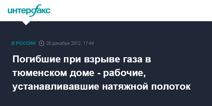 Тюмень. 26 декабря. INTERFAX.RU - При взрыве газа в многоэтажном доме- новостройке в Тюмени погибли рабочие из бригады строителей, осуществлявших ремонтные работы, сообщили агентству "Интерфакс" в пресс-службе областного УМВД.