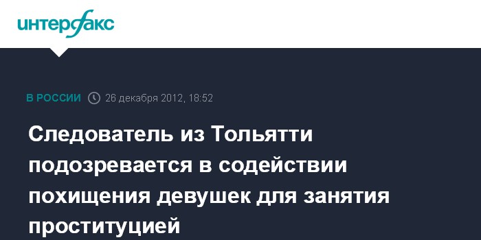 Следователь из Тольятти подозревается в содействии похищения девушек для занятия проституцией