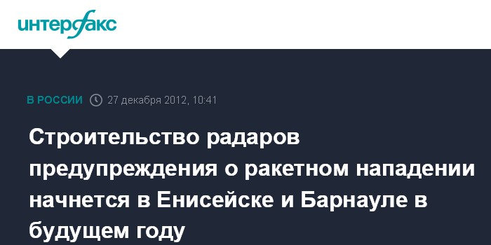 "Новые РЛС будут строиться по всему периметру территории России и, в частности, в Енисейске (Красноярский край) и Барнауле (Алтайский край)", - заявил он.