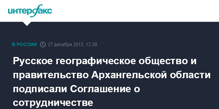 Москва. 27 декабря. INTERFAX.RU – Русское географическое общество и правительство Архангельской области подписали Соглашение о сотрудничестве, расширяющее рамки партнерства в области изучения географических и смежных наук, популяризации географических знаний, сохранении природы и формировании экологической культуры.