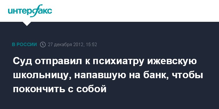 Суд отправил к психиатру ижевскую школьницу, напавшую на банк, чтобы покончить с собой