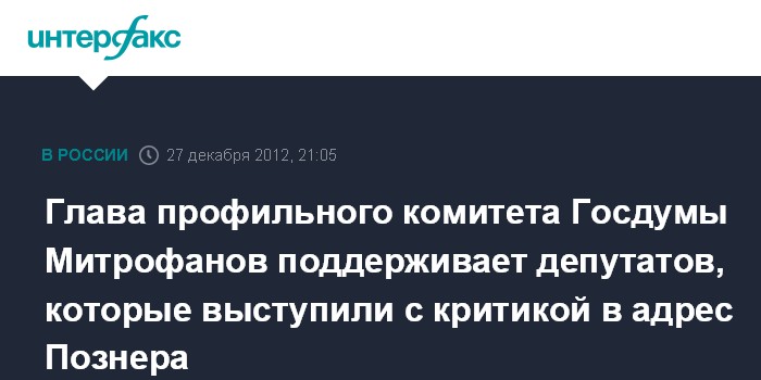 Москва. 27 декабря. INTERFAX.RU - Руководитель комитета Госдумы по информационной политике, информационным технологиям и связи Алексей Митрофанов поддержал обращение своих коллег к известному тележурналисту Владимиру Познеру, в котором депутаты заявили о недопустимости высказывания в эфире оскорбительных оценок по отношению к органам государственной власти.