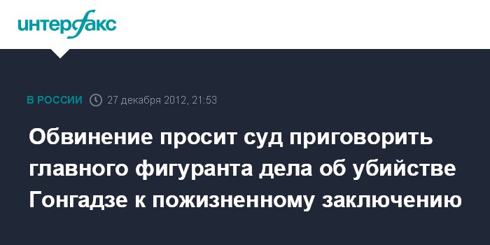 Киев. 27 декабря. INTERFAX.RU - Прокуроры в деле об убийстве журналиста Георгия Гонгадзе, по которому проходит бывший начальник департамента наружного наблюдения МВД Украины Алексей Пукача, предложили Печерскому суду Киева приговорить его к пожизненному заключению.