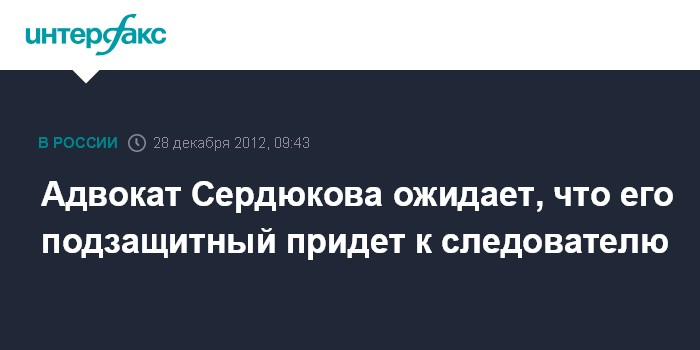 Адвокат Cердюкова ожидает, что его подзащитный придет к следователю