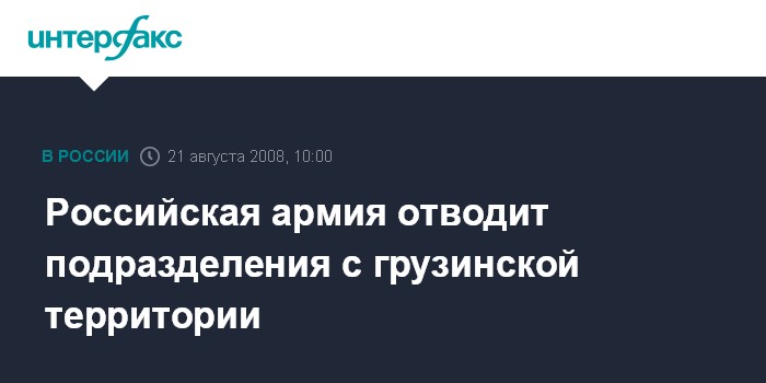 Москва. 21 августа. INTERFAX.RU - Отвод подразделений 58-й армии Северокавказского военного округа начался в четверг с территории Грузии, сообщили "Интерфаксу-АВН" в российском военном ведомстве.