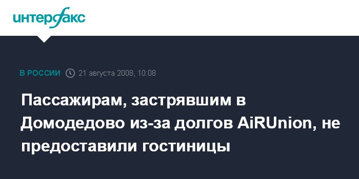 Москва. 21 августа. INTERFAX.RU - В "Домодедово" до сих пор ожидают вылетов своих рейсов 2,5 тысяч пассажиров авиакомпаний-членов альянса AiRUion, сообщил "Интерфаксу" официальный представитель альянса.