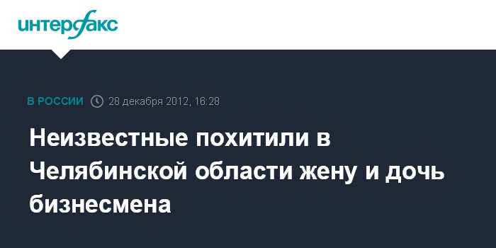 Челябинск. 28 декабря. INTERFAX.RU - В Челябинской области разыскивают трех неизвестных, похитивших жену и дочь местного предпринимателя, сообщает следственное управление СКР по региону