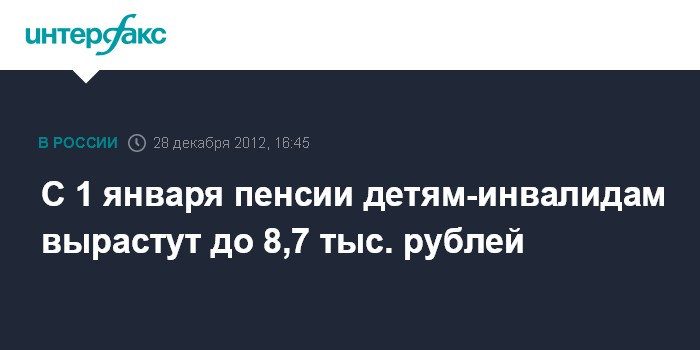 С 1 января пенсии детям-инвалидам вырастут до 8,7 тыс. рублей