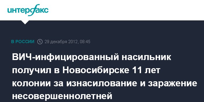 Новосибирск. 29 декабря. INTERFAX.RU - Новосибирский областной суд признал местного жителя виновным в изнасиловании не достигшей совершеннолетия девушки и заражении ее вирусом иммуннодефицита человека.