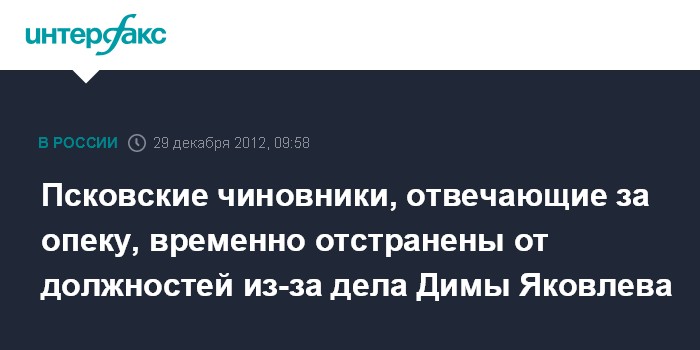Псковские чиновники, отвечающие за опеку, временно отстранены от должностей из-за дела Димы Яковлева
