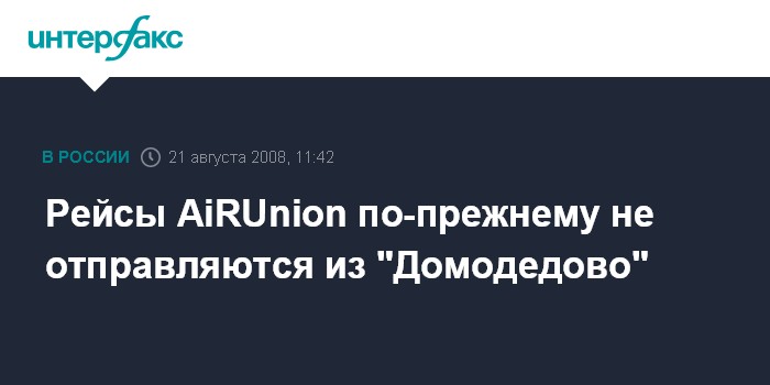 Москва. 21 августа. INTERFAX.RU – Авиакомпании альянса AiRUnion - "Красноярские авиалинии" (КрасЭйр), "Домодедовские авиалинии" (ДАЛ), "Самара", "Омскавиа" - по-прежнему не выполняют рейсы из аэропорта "Домодедово", сообщили "Интерфаксу" в четверг в альянсе.