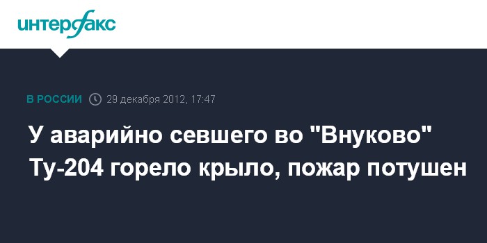 У аварийно севшего во "Внуково" Ту-204 горело крыло, пожар потушен
