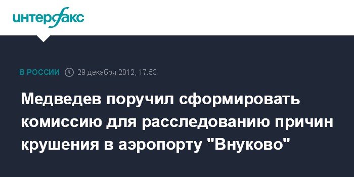 Медведев поручил сформировать комиссию для расследованию причин крушения в аэропорту "Внуково"