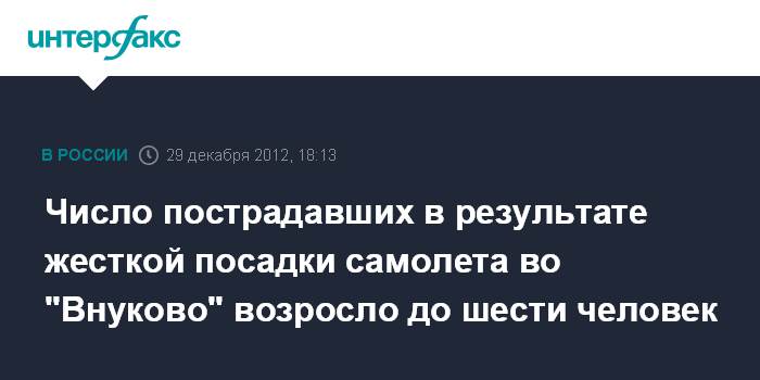 Число пострадавших в результате жесткой посадки самолета во "Внуково" возросло до шести человек