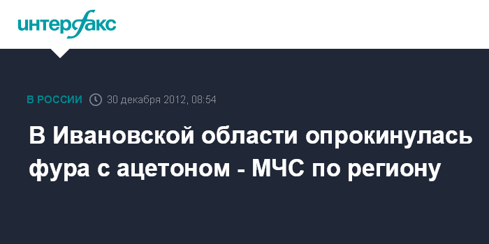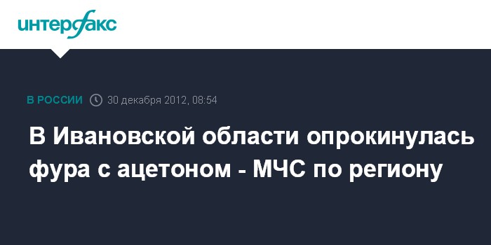 Иваново. 30 декабря. ИНТЕРФАКС - В Юрьевецком районе Ивановской области в деревне Пелевино 8:00 воскресенья на проезжей части опрокинулась 10- тонная фура с ацетоном, сообщили "Интерфаксу" в ГУ МЧС по региону.
