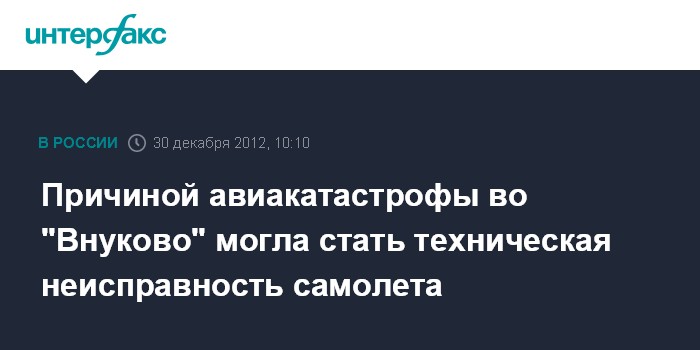 Причиной авиакатастрофы во "Внуково" могла стать техническая неисправность самолета