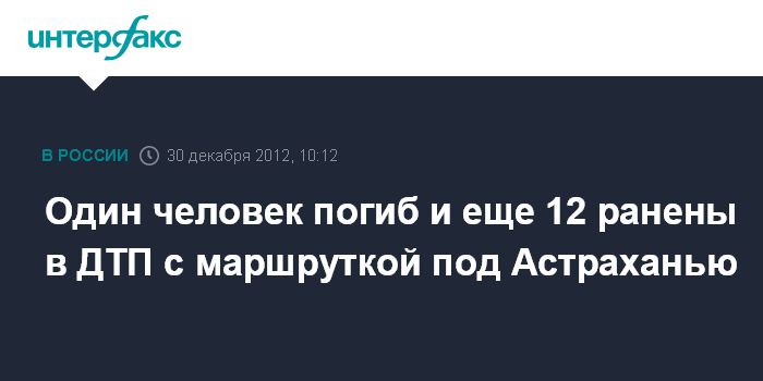 Астрахань. 30 декабря. INTERFAX.RU - В аварии с участием маршрутного такси на трассе Астрахань-Махачкала в Астраханской области пострадало 12 человек, один погиб, сообщили в пресс-службе УГИБДД по региону.