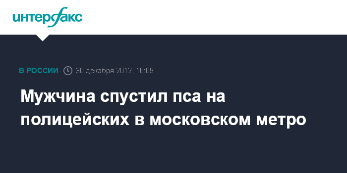 Москва. 30 декабря. INTERFAX.RU - Сотрудники полиции задержали мужчину, который в воскресенье днем натравил собаку на стражей порядка в столичной подземке, сообщили "Интерфаксу" в пресс-службе московского главка МВД.