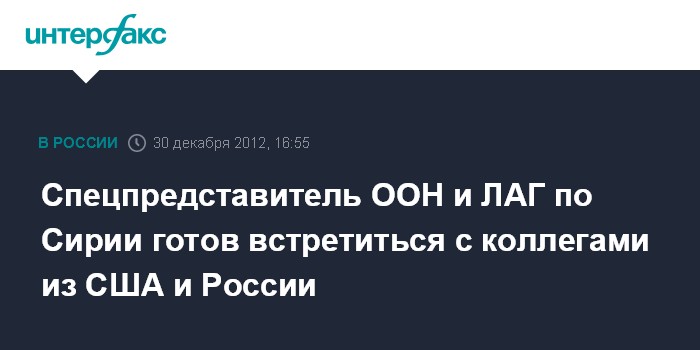 Москва. 30 декабря. INTERFAX.RU - Спецпредставитель ООН и ЛАГ по Сирии Лахдар Брахими выразил готовность провести совместные встречи с представителями России и США, заявляют в МИД РФ.