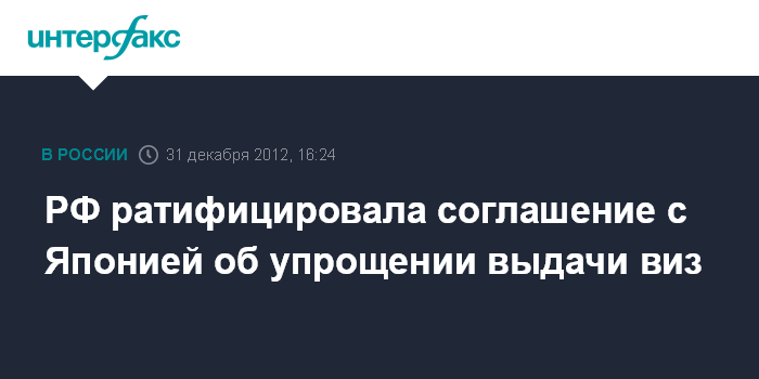 Москва. 31 декабря. INTERFAX.RU - Президент России Владимир Путин подписал закон о ратификации соглашения между правительствами РФ и Японии об упрощении выдачи виз гражданам двух стран.