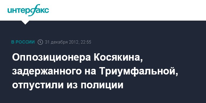 Москва. 31 декабря. ИНТЕРФАКС - Гражданские активисты сообщили, что из полиции отпустили одного из организаторов митинга на Триумфальной площади, активиста "Левого фронта" Константина Косякина.