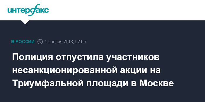 Москва. 1 января. ИНТЕРФАКС - Полиция отпустила всех участников несанкционированной акции, задержанных 31 декабря на Триумфальной площади в центре Москвы.