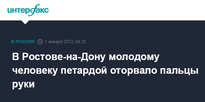 Ростов-на-Дону. 1 января. ИНТЕРФАКС-ЮГ - Житель Ростова-на-Дону пострадал в момент взрыва петарды, сообщили агентству "Интерфакс-Юг" в экстренных службах города во вторник.