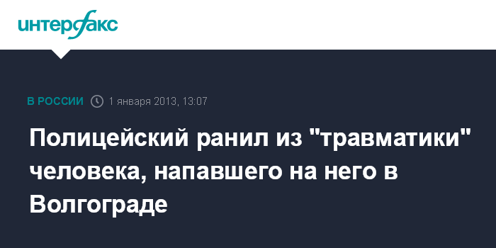 Ростов-на-Дону. 1 января. INTERFAX.RU - Сотрудник полиции, возвращаясь со службы домой в городе Волгограде, вынужден был применить травматический пистолет для обороны от группы хулиганов, сообщили агентству "Интерфакс-Юг" в правоохранительных органах Волгограда.