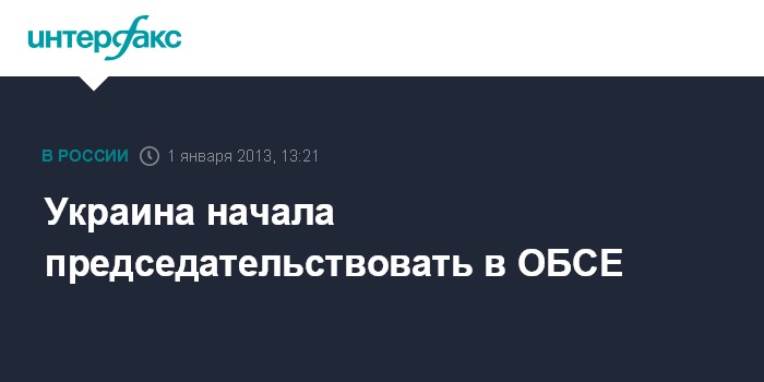 Киев. 1 января. INTERFAX.RU - Украина с 1 января 2013 года начала председательствовать в Организации по безопасности и сотрудничеству в Европе (ОБСЕ), в которую входят 57 государств-участников.
