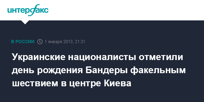 Киев. 1 января. ИНТЕРФАКС-УКРАИНА - Сторонники всеукраинского объединения "Свобода" приняли участие в факельном шествии в Киеве по поводу 104-й годовщины лидера организации украинских националистов (ОУН) Степана Бандеры.