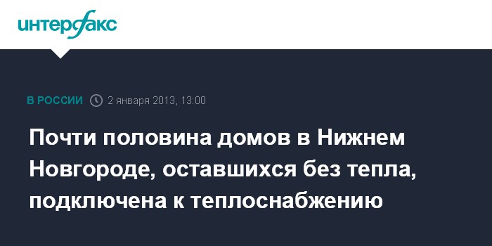 Почти половина домов в Нижнем Новгороде, оставшихся без тепла, подключена к теплоснабжению
