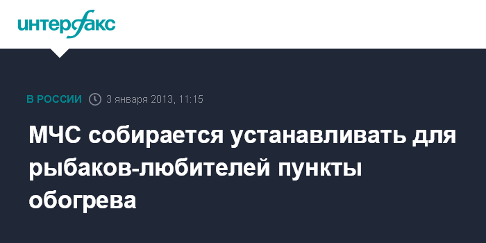 Москва. 3 января. INTERFAX.RU - Глава МЧС Владимир Пучков предлагает устанавливать для рыбаков-любителей пункты обогрева. "Прошу организовать соответствующие подразделения для дежурства там, где осуществляется массовый выход людей на лед", - сказал В.Пучков на селекторном совещании в четверг, обращаясь к начальнику Северо-Западного регионального центра.