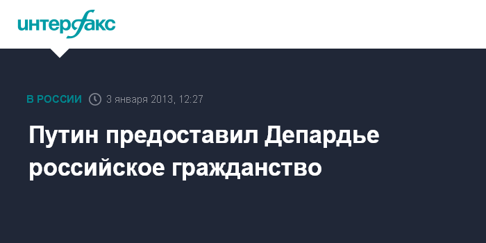 Путин предоставил Депардье российское гражданство