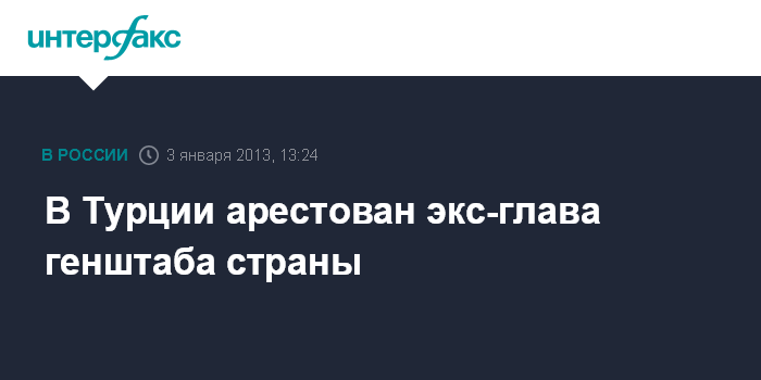 Стамбул. 3 января. INTERFAX.RU - Турецкие власти в четверг арестовали бывшего начальника генерального штаба вооруженных сил страны генерала Исмаила Хаккы Карадийи по подозрению в попытке государственного переворота в 1997 году, сообщает Анатолийское агентство новостей.