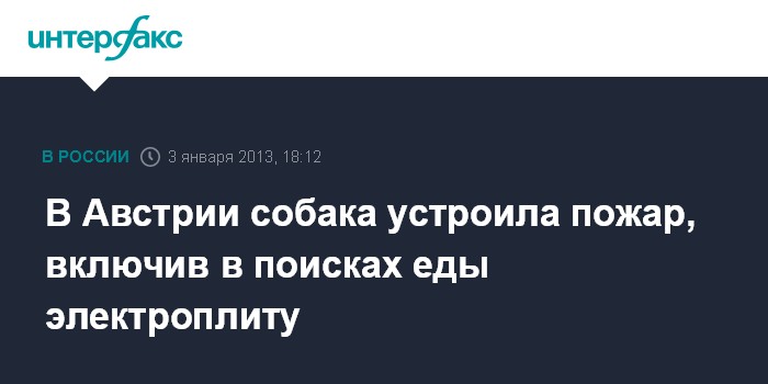 Лондон. 3 января. INTERFAX.RU - Голодная собака, оставленная дома хозяевами, устроила крупный пожар на одном из альпийских курортов в Австрии, возможно, пытаясь добраться до лежавшей на электроплите еды, сообщает британская телерадиокорпорация Би-Би-Си.