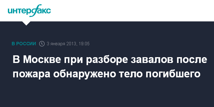 Москва. 3 января. INTERFAX.RU - Личность человека, тело которого было обнаружено на месте декабрьского крупного пожара в Бумажном проезде, устанавливают сотрудники полиции.