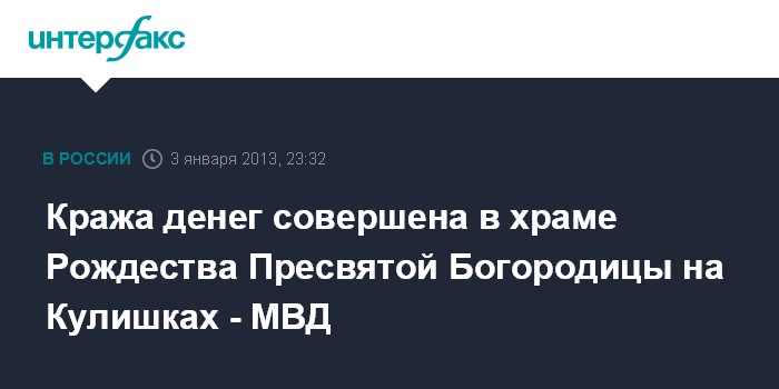 "1 января в ОМВД по району Таганский обратился с заявлением о краже из храма Рождества Пресвятой Богородицы на Кулишках, расположенного по адресу: улица Солянка, дом 5/2, священнослужитель, который сообщил, что в тот же день неизвестный проник в помещение храма и похитил денежные средства", - сказал представитель пресс-службы.