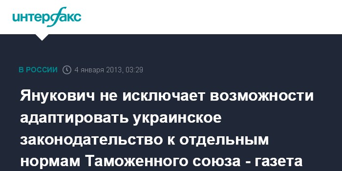 Янукович не исключает возможности адаптировать украинское законодательство к отдельным нормам Таможенного союза - газета