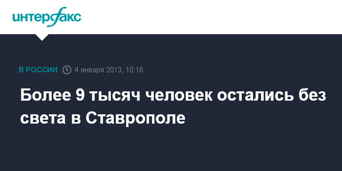 Ставрополь. 4 января. INTERFAX.RU - Несколько десятков жилых домов в пятницу лишись энергоснабжения в Ставрополе, сообщил агентству "Интерфакс-Юг" руководитель пресс-службы краевого ГУ МЧС Олег Дегтярев. "Нарушение энергоснабжения произошло в 8:40 мск из-за сбоя в работе фидера в одном из жилых кварталов Ставрополя", - сказал О.Дегтярев.