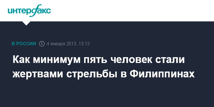 Манила. 4 января. INTERFAX.RU - Не менее пяти человек погибли и еще 11 были ранены в пригороде Манилы, где вооруженный мужчина открыл огонь по прохожим, сообщили в пятницу местные СМИ. Среди жертв и пострадавших есть дети. Инцидент произошел примерно в 40 км к югу от Манилы. Сам злоумышленник был убит в перестрелке с полицией.