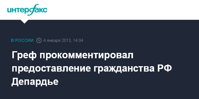 Греф прокомментировал предоставление гражданства РФ Депардье