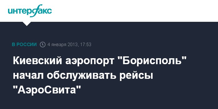 Киев. 4 января. INTERFAX.RU - Госпредприятие "Международный аэропорт "Борисполь" получило сообщение авиакомпании "АэроСвит" о частичной предоплате за услуги, которые будут предоставлены в последующие дни, и гарантийное письмо с обязательствами перечислить средства за фактически предоставленные услуги в среду, 9 января 2013 года, и начало обслуживать рейсы "АэроСвита" на вылет.