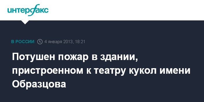 Потушен пожар в здании, пристроенном к театру кукол имени Образцова