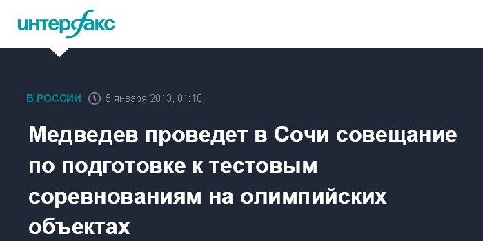 Медведев проведет в Сочи совещание по подготовке к тестовым соревнованиям на олимпийских объектах
