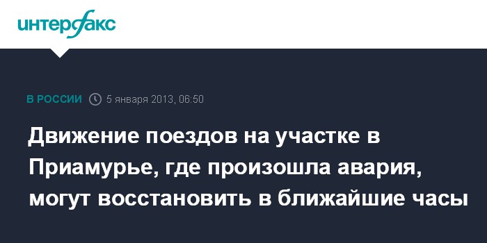 Благовещенск. 5 января. ИНТЕРФАКС-ДАЛЬНИЙ ВОСТОК - Специалисты в Приамурье планируют восстановить к 8:00 мск железнодорожное полотно на участке, где сошли с рельсов 26 пустых цистерн, сообщает в субботу ГУ МЧС по Амурской области.