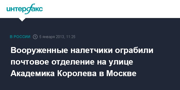 Вооруженные налетчики ограбили почтовое отделение на улице Академика Королева в Москве